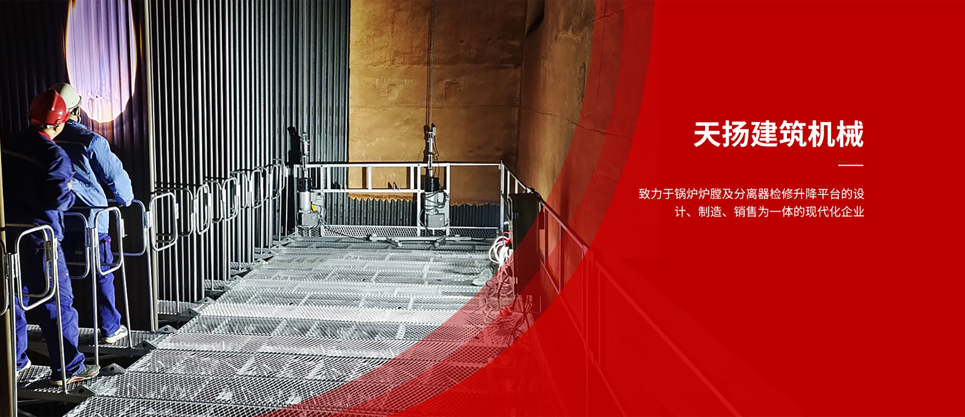 海陽市天揚建筑機械有限公司坐落于魅力四射的海濱城市海陽市,致力于鍋爐爐膛及分離器檢修升降平臺的設計、制造、銷售為一體的現代化企...